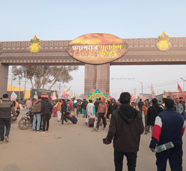1. Prayagraj (Allahabad) – Kumbh takes place when Jupiter enters Aries, and Sun and Moon are in Capricorn. It is held on the banks of Triveni Sangam in the month of Magha (January-February).